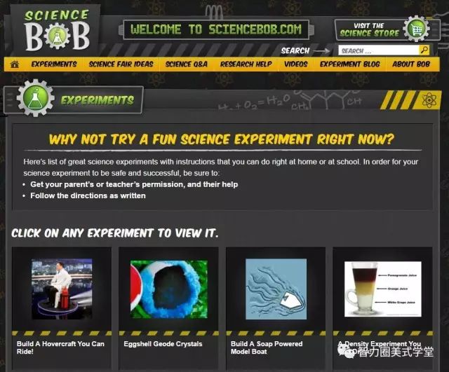 ScienceBOB 分享了不计其数的可以手动测试的科学项目,培养孩子动手能力。它的每一个科普项目都有详细说明,通过生活中常用的材料就可以完成,非常简单实用。