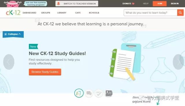 CK12是一个免费的提供STEAM资源的网站。用户可以创建一个群组给学生来学习。也可以自己在网上创造素材。网站上有一些模拟的实验供学生选择。它的课程设计符合NGSS的标准。