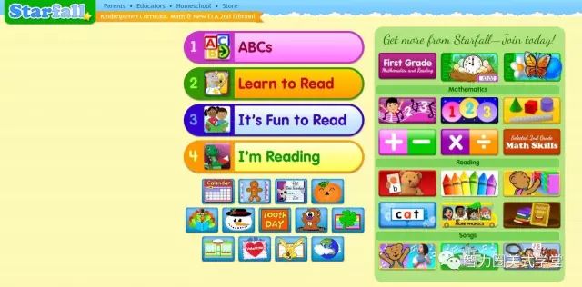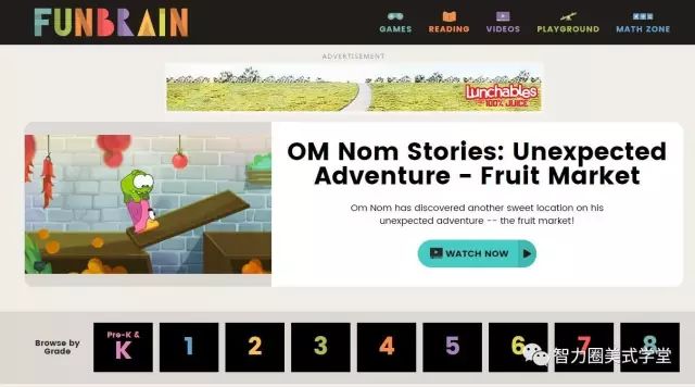 这是一个好玩的英文阅读网站。可以练习孩子的英文阅读文法。此外也有数学等内容。这个网站上的内容是按照年级来分的,可在底部选择孩子的年级,到达对应的内容。