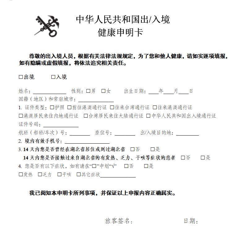 根据境内外疫情风险变化,自3月3日起海关正式启用第四版《中华人民共和国出/入境健康申明卡》,所有出入境人员都必须进行健康申报,海关在口岸对申报内容进行审核,严格排查有没有症状。具体可以通过纸质申报或线上申报。