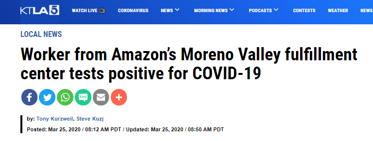 亚马逊已为需要居家的员工提供弹性空间,也提供确诊感染新冠肺炎的员工有薪病假;透过Prime Now、Amazon Fresh和全食超市(Whole Foods Market)订购商品的客户也可选“无人送货”来避免与人接触。
