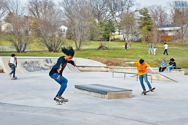 图为内布拉斯加州奥马哈市的一个公园,有人在玩滑板(美联社)