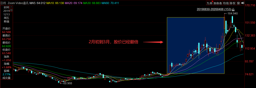 在安全漏洞曝光之前,Zoom已经从1月70美元左右,上涨至最高164美元。与此同时,美股暴跌近50%。