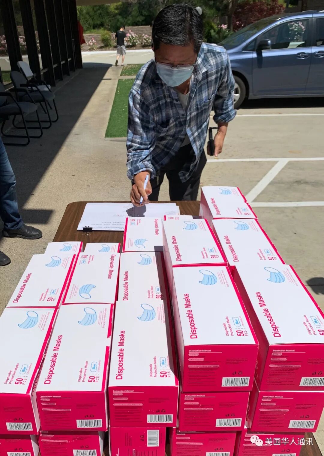 美国北京联合会的会长许绍理来到现场给忙碌的义工干部们送来了有机苹果汁和饼干。还有一些北京联合会的老朋友领了口罩后,索性加入到义工团队,一起在现场帮忙张罗起来。 短短的两三个小时,爱心口罩落实到位,发放完毕。朋友们有些不舍离去但是遵守居家令,不能聚餐也不能聚会聊天,相约疫情过后再聚!
