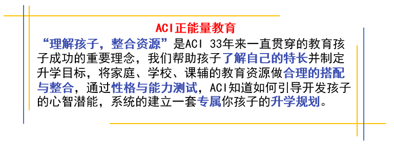 投资教育即是投资未来。亚里士多德曾说:"教育的根是苦的,但其果实是甜的。”道路要正确,方向要明确。ACI的升学规划不仅是规划学业,更是规划未来。