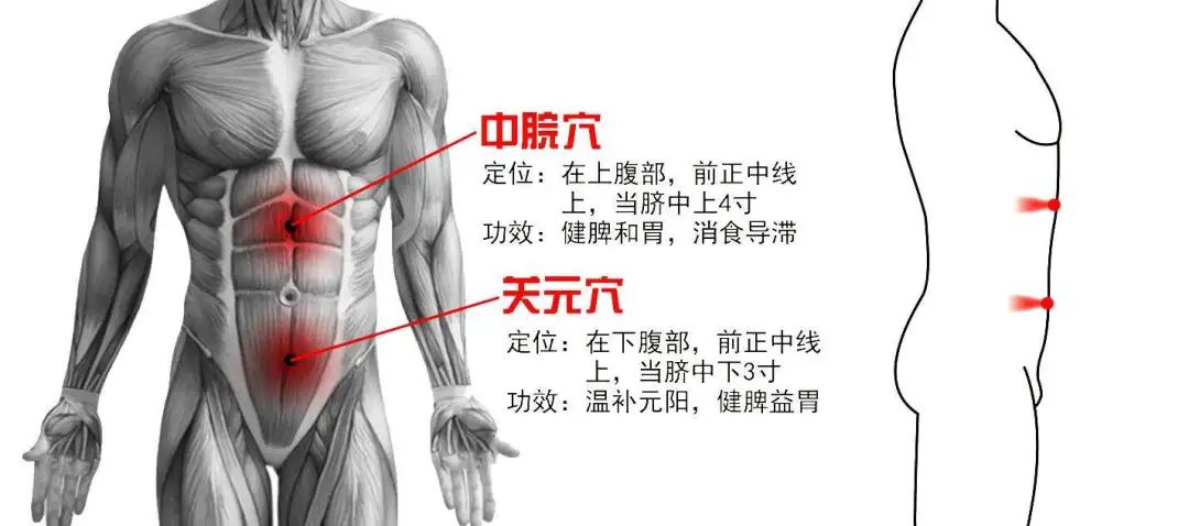 我们一般在艾灸取穴时,中脘穴、关元穴一起用,因为一个补先天的肾,一个补后天的脾,总的都是补人体的元气!