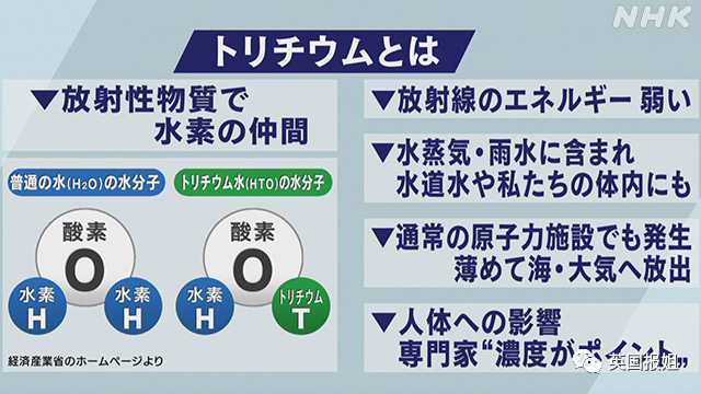 大家都知道,氚和氕、氘一样,是氢的同位素。按照日媒援引的资料,氚的放射性很小,在雨水、水蒸气、水管甚至人体内都有存在。