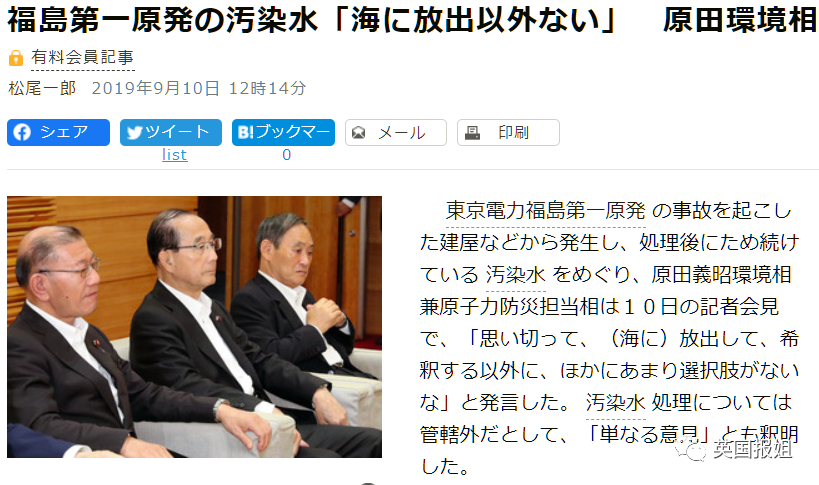 实际上,这个方法也不是没人提过,但是因为争议太大一直被搁置。真正引起轰动是在一年前,环境大臣、核电防灾担当大臣原田义昭直言,除此之外核废水的处理别无他法。国家高层释放出这样的信号,结论已经很明确了:或早或晚,这事肯定得这么办,再拖下去也还是不会有新的办法。