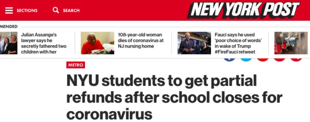 面对层出不穷的起诉,终于有大学承诺退还部分学费,比如NYU