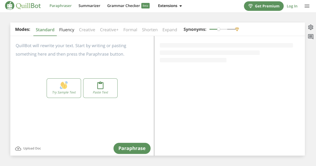 QuillBot是一家专注于AI文本改写的创业公司。它能在数秒钟内给你的文章段落提出该写建议,并且根据标准、流畅、创新等不同写作风格进行相应的调整。尽管WordAi、Chimp Rewriter和Grammarly都能改写整段文字,