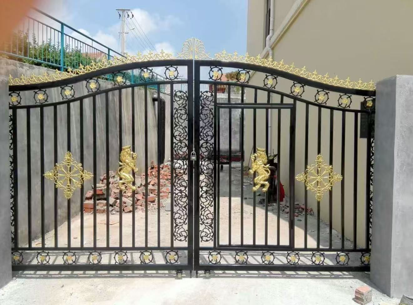 近期,天鼎鐵藝製作完成多項住宅大門設計案,每一款皆以細膩工藝與穩重線條,體現出專屬於居家的尊榮質感。從典雅的黑金花飾,到沉穩的霧面設計,再到雕飾金獅的歐式門面,皆展現出天鼎團隊對細節的嚴謹追求與藝術品味。