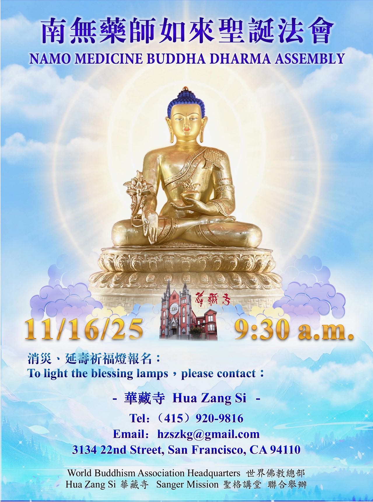 舊金山華藏寺將於本週日 (11月16日) 舉辦殊勝的「南無藥師如來聖誕法會」,熱忱歡迎廣大佛弟子及佛教善信踴躍參加,祈福消災,共享法喜。