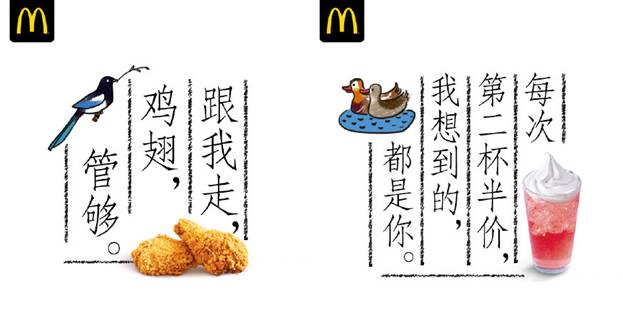 【S姐说:麦当劳和肯德基的本土化都做得非常不错--中国的肯德基有老北京鸡肉卷、泰国的麦当劳除了番茄酱还供应当地人民喜闻乐见的甜辣酱。不只是产品,连营销推广的海报和文案也十分接地气,本文转自#烩设计# (ID:multidesign)】