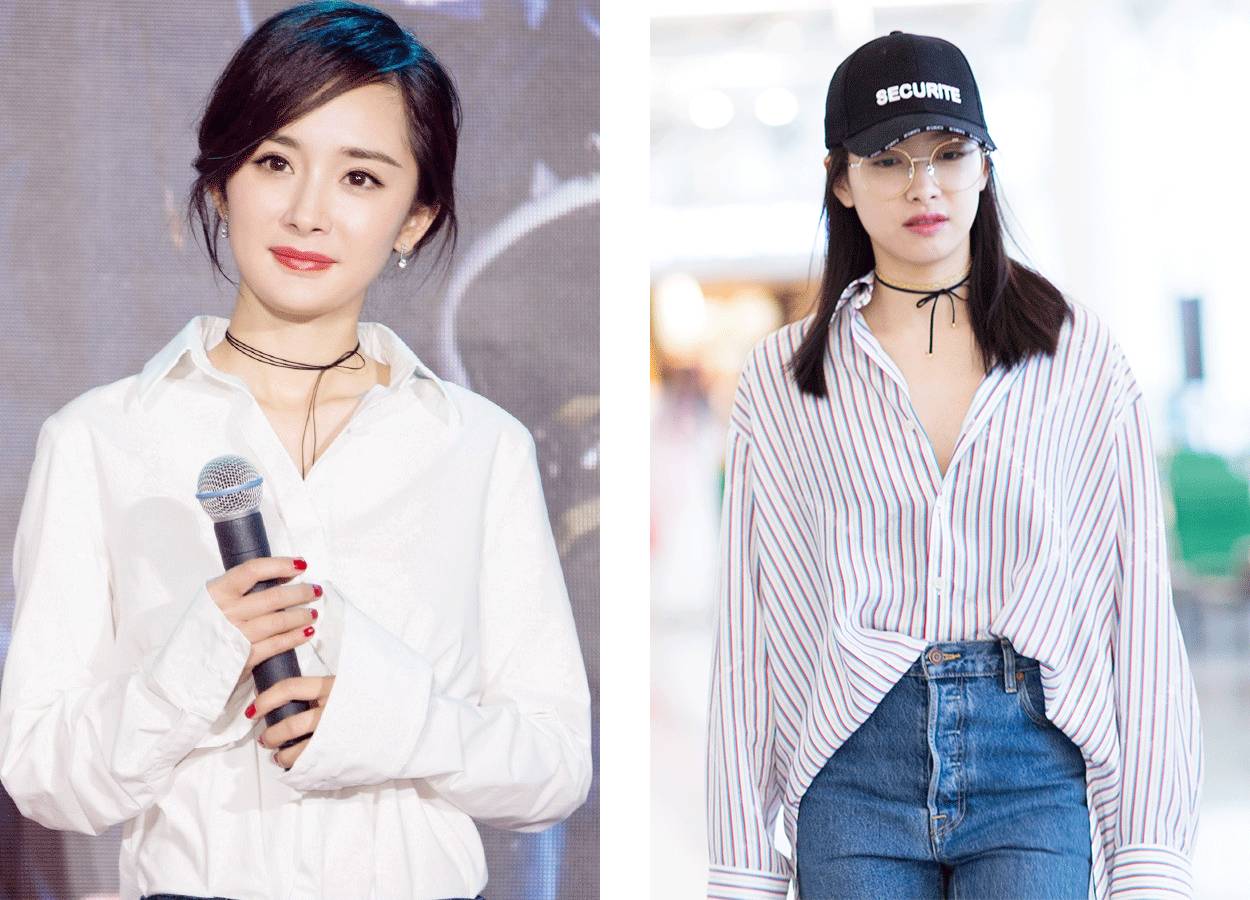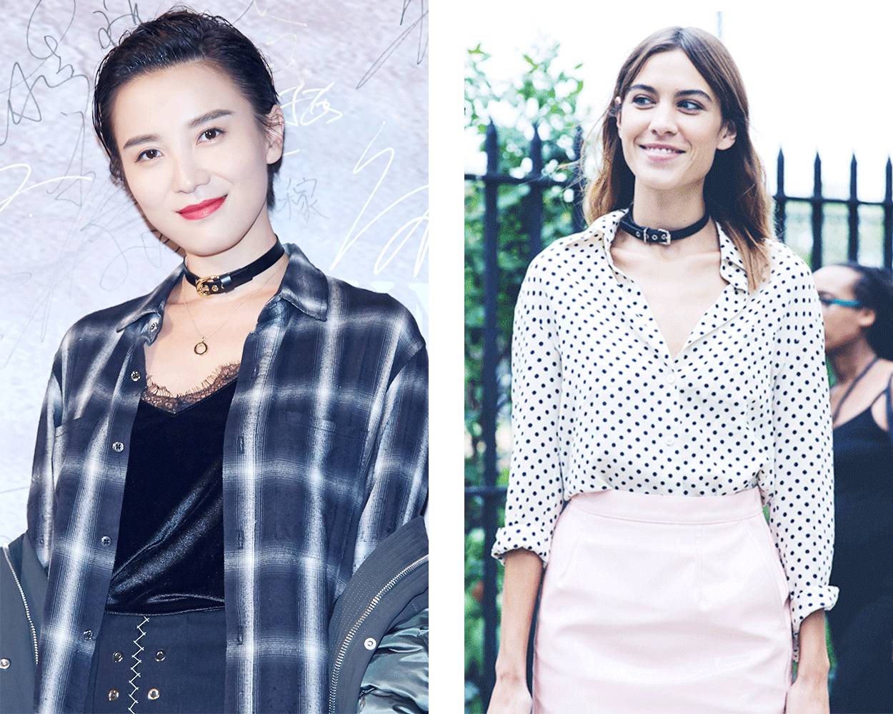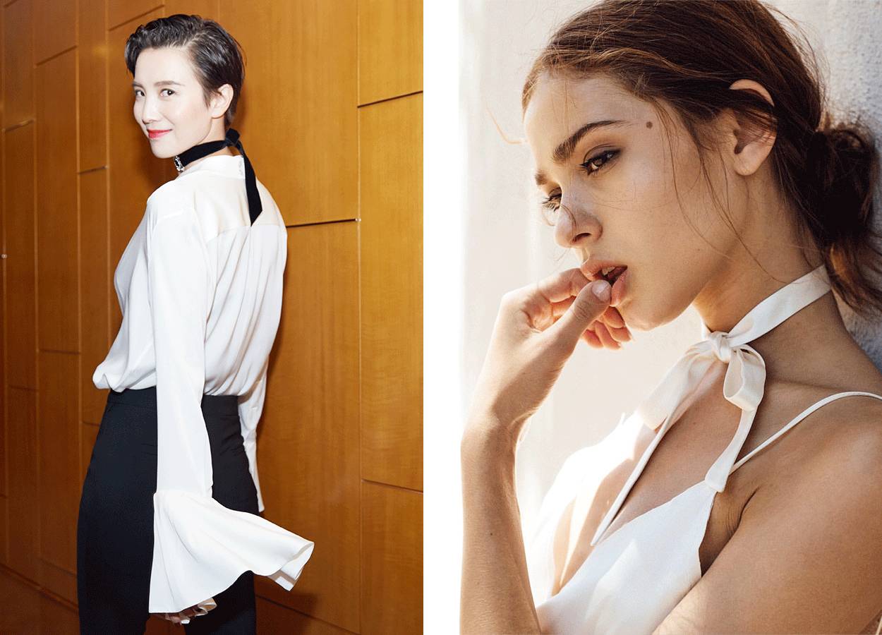 客官們可以像楊冪和宋茜一樣搭配中性帥氣的襯衫,再用Wrap Choker打成蝴蝶中和掉身上的中性。帥而不過,甜而不膩,恰到好處。