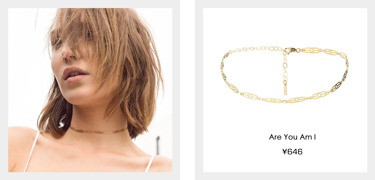 來自LA的平價品牌Are You Am I就有很多這樣的細金屬Choker,大多材質都是14K黃金,戴起來時髦又不浮誇。