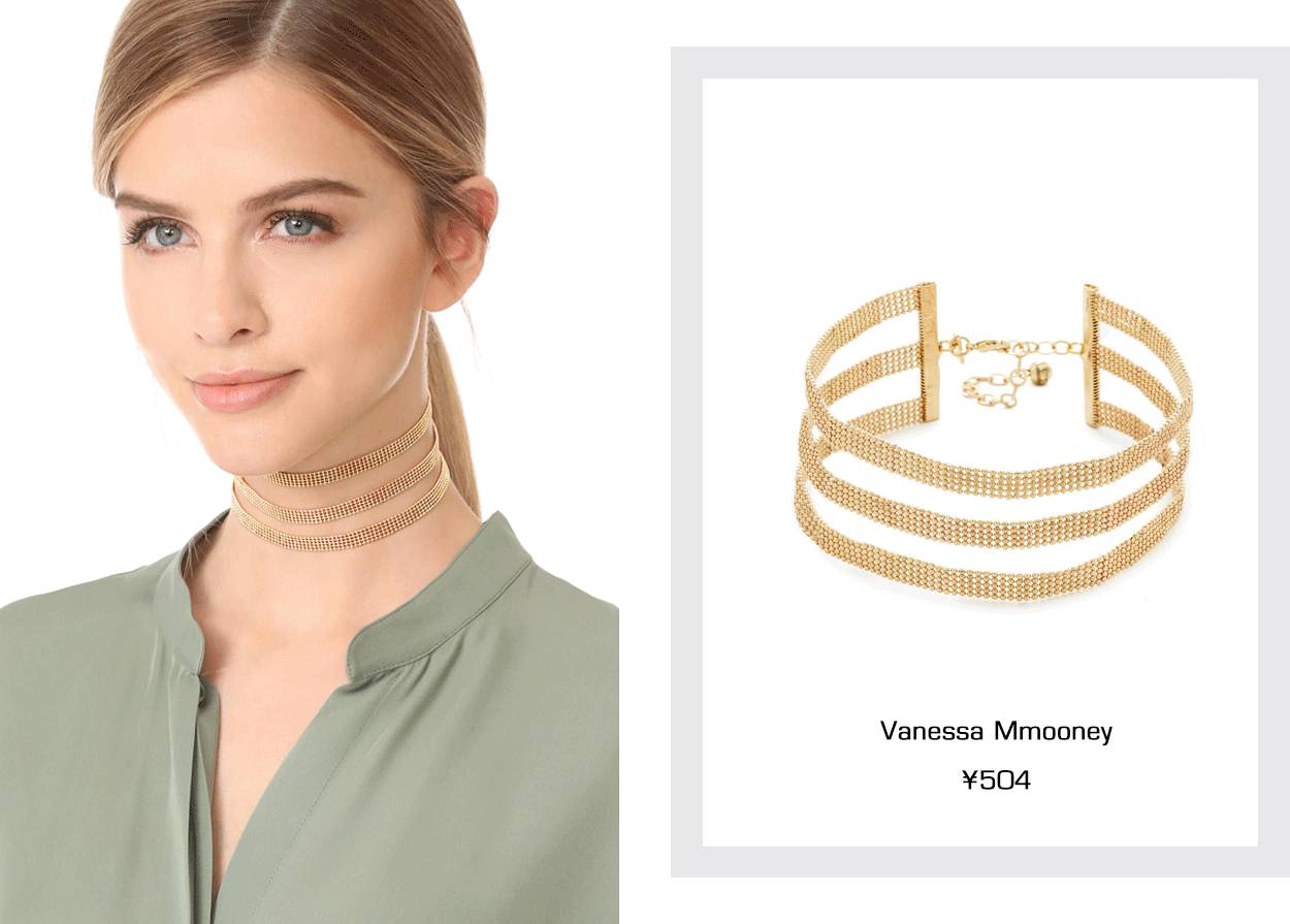 因爲Choker戴在脖子中間,弄不好就會顯得脖子短。所以更適合搭配可以敞開胸懷容納天地的單品。