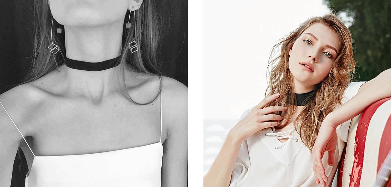 一般情況下,客官們可以選擇百搭性感的黑色細Choker, 畢竟寬Choker對脖子的長度要求太高。
