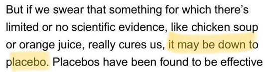 这些偏方所起到的安慰剂作用,恐怕才是它们起效的关键。
