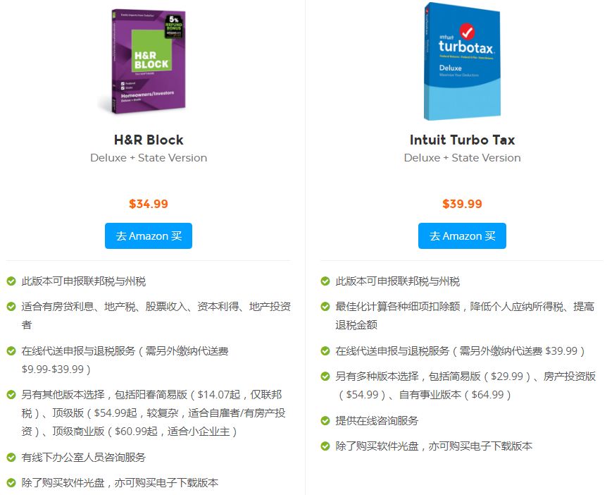注意:以上价格为 2019/1/4 之 Amazon 标列之售价,任何价格变动请以 Amazon 标示为准。另外要提醒大家,报税软件的折扣在十二月底到二月初之间会最佳,等到邻近报税期限约一个半月时就会恢复原价卖,所以建议大家趁便宜先买起来。