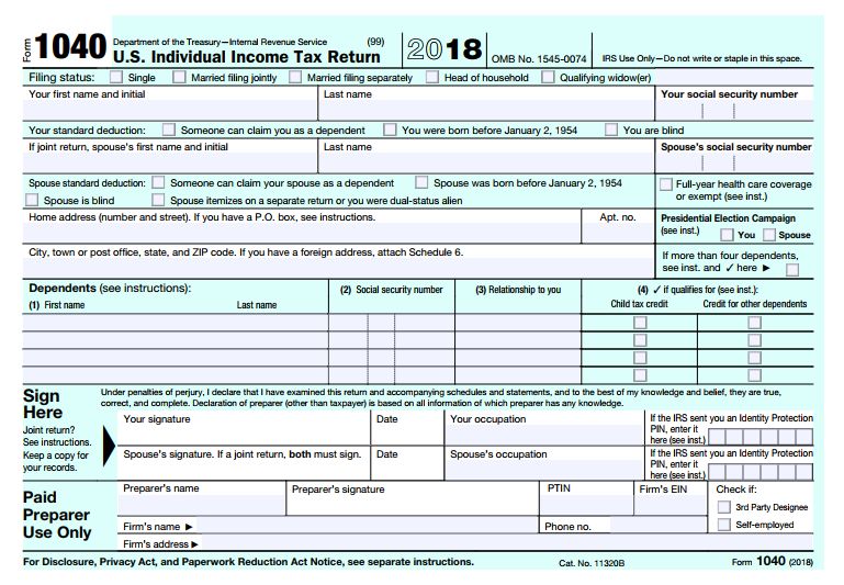 最新 Form 1040 表格按这里。