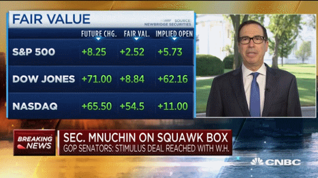 财政部长史蒂芬·姆努钦(Steven Mnuchin)今天上午接受CNBC采访时表示,在经过昨晚一整晚的谈判后,目前新一轮的纾困方案在共和党内已经达成一致。可以明确的是,上一轮给每名纳税人发的1200美元将会保持不变,另外每周600美元的联邦失业金补助将会作出调整,或调至原工资的70%。
