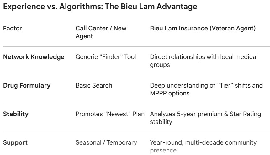 The 2026 Medicare landscape is flooded with "national call centers" and AI-driven bots. However, a local agent with years in the San Gabriel Valley knows the local provider networks. We know which medical groups in Rosemead and Alhambra are currently in contract disputes and which plans have the most robust "Tier 1" specialists. This "insider knowledge" ensures your favorite doctor doesn't suddenly become "out-of-network" mid-year.