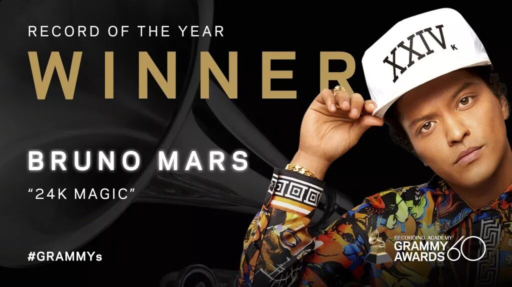 火星哥也成为了继Adele之后第一位格莱美横扫年度专辑,年度歌曲与年度制作的歌手!